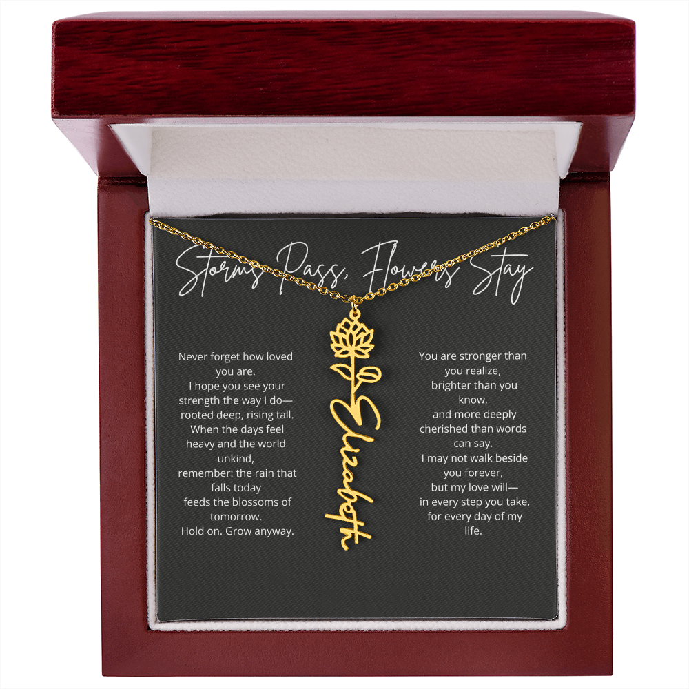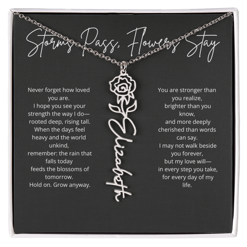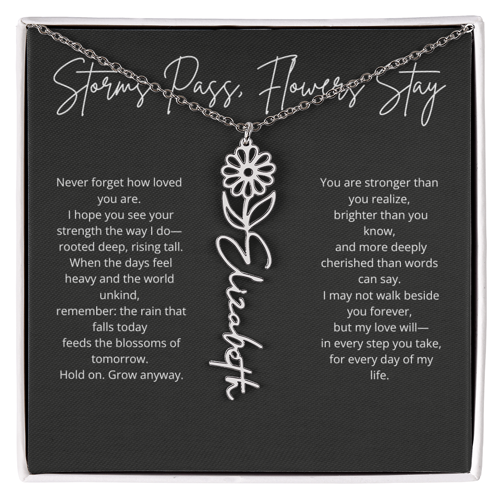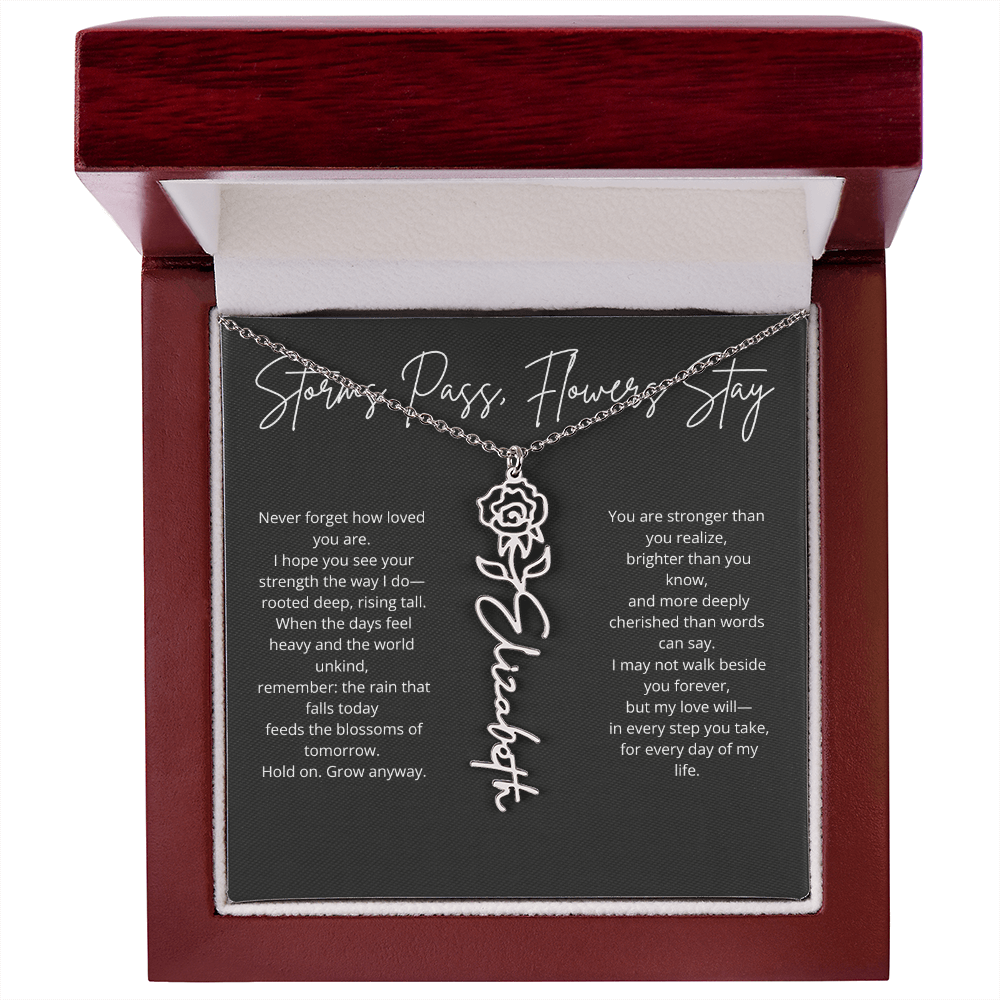 Personalized Flower Name Necklace - Storm Pass, Flower Stay