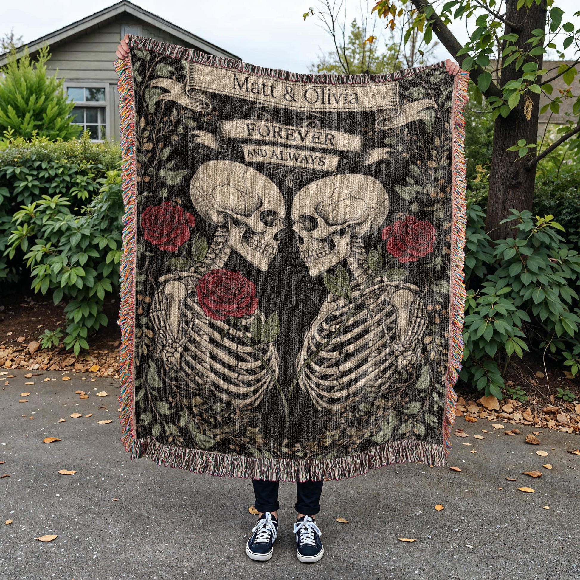 Gothic Skeleton Couple | Personalized Woven Blanket